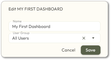 Hover over the name of the dashboard, and click on the pencil icon that appears.